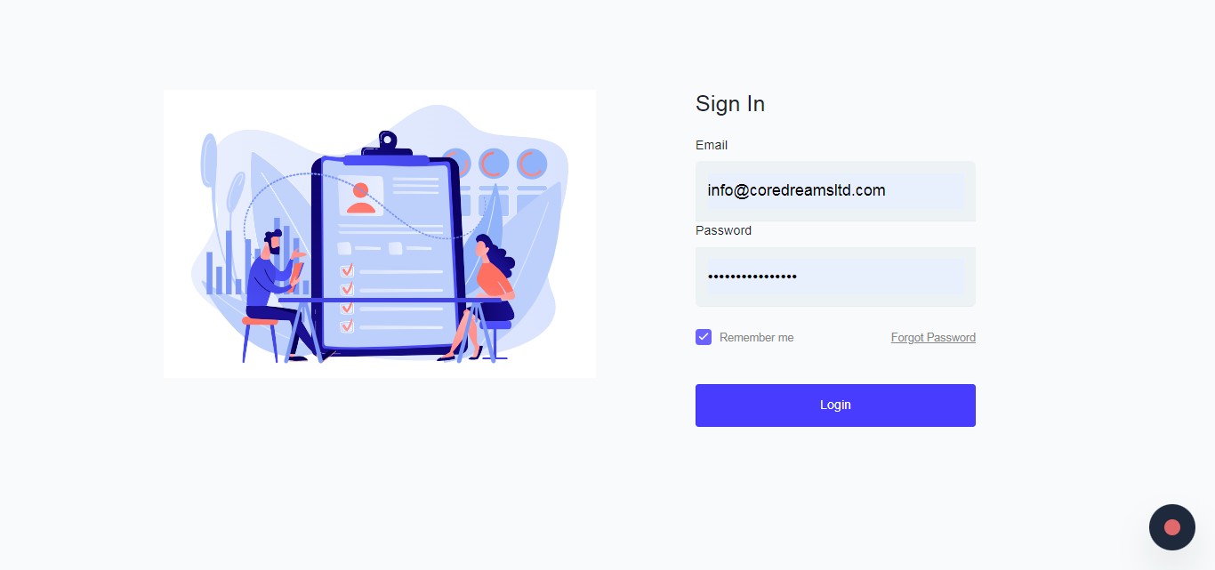 Email: Enter the Email address Password: Enter the password